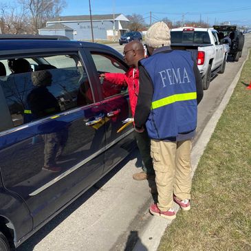 After the disaster occurred, the response to it started with FEMA collaboration at a Feed Your Neighborhood Corp. Food Distribution. Getting in touch with disaster survivors was the first step in building relationships towards recovery.